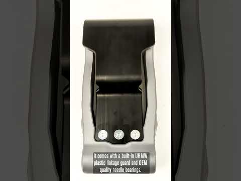 Robust 6 mm thick UHMW integrated linkage guard to protect the lower shock mount (removable with 3 x M6 flush mounted fasteners). The only offering with a built-in plastic guard doesn't transfer impact like other rigid guards and won't snag like aluminum will.
