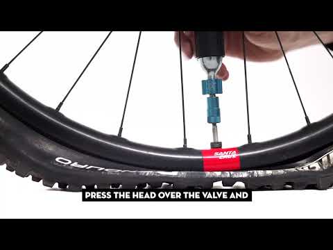 - Appuyez la tête sur la valve et poussez-la fermement vers le bas pour décharger la cartouche et gonfler le pneu à la pression souhaitée. Le relâchement de la tête de gonflage arrête l'écoulement.